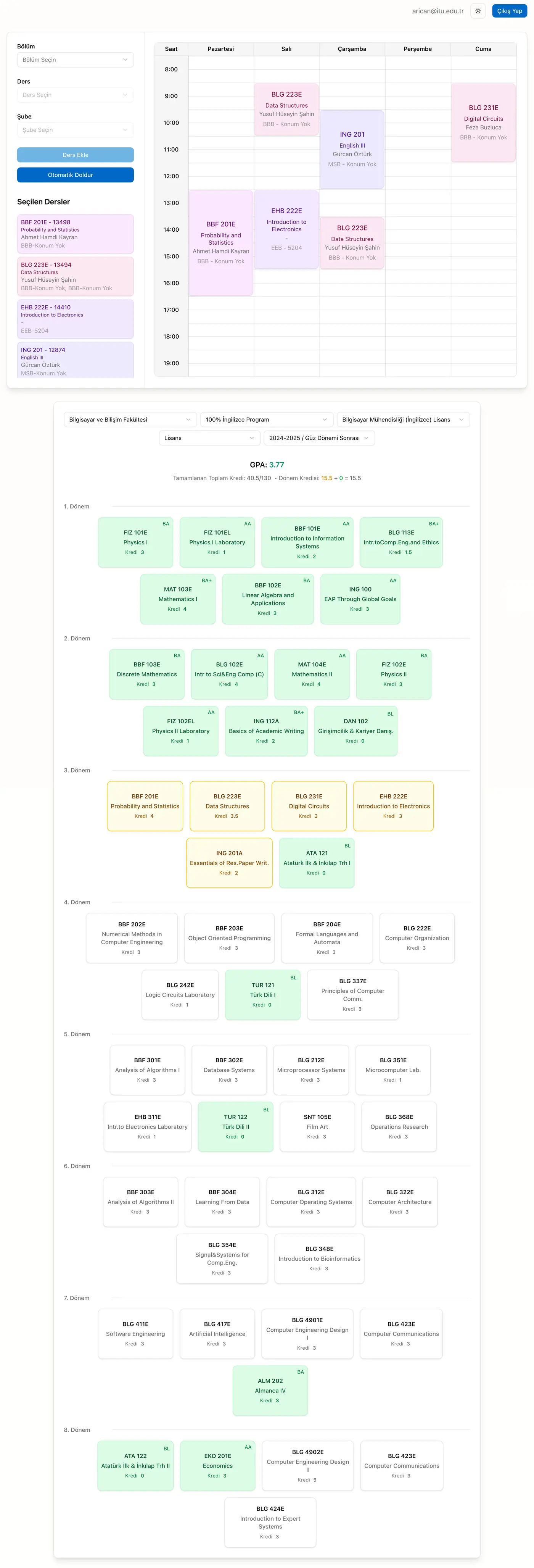 İTÜ Asistan ile ders programını çakışmasız oluştur, müfredat ilerlemeni gör, GPA ve kredi durumunu takip et. Hepsi tek yerde.